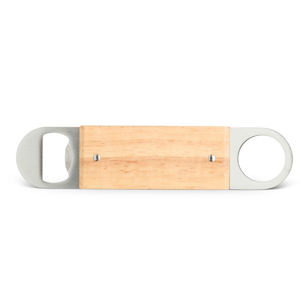 Descrição: Abridor de garrafa com cabo de madeira e argolas em aço inox resistente.