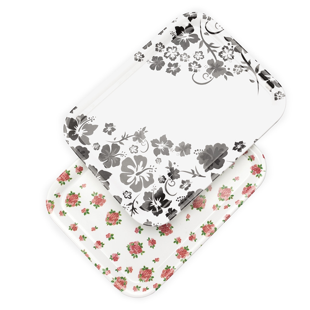 Descrição: Bandeja retangular feito em melamina, material conhecido por sua resistência a impactos e facilidade de limpeza.