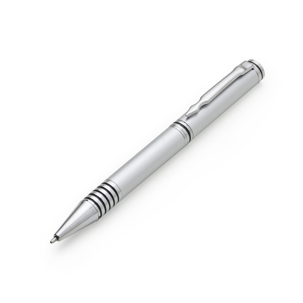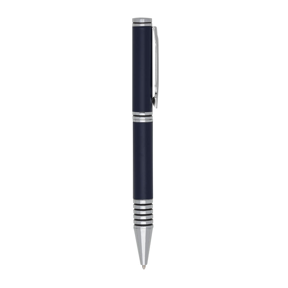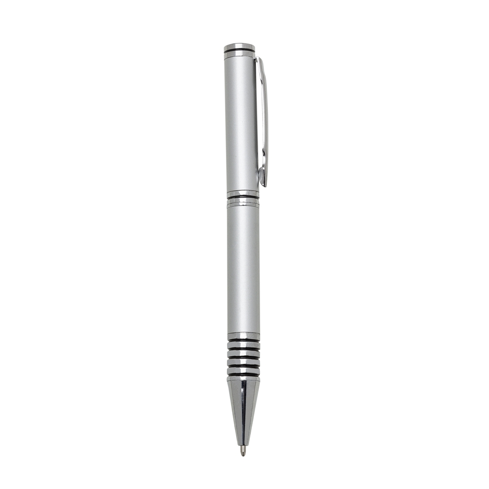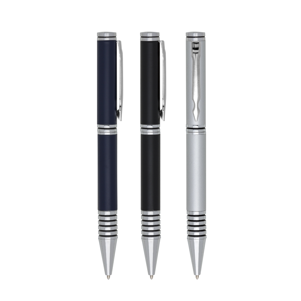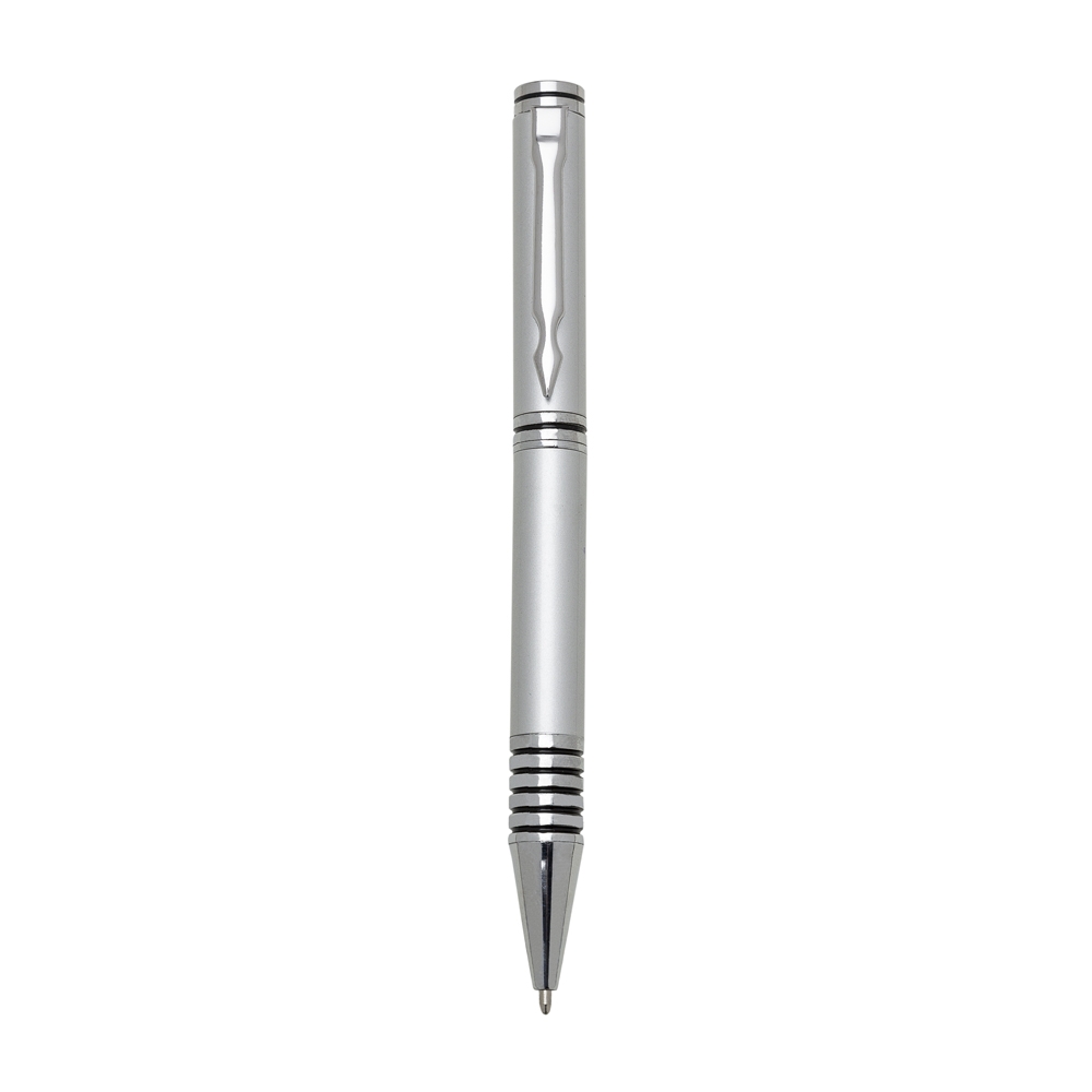 Descrição: Caneta metálica com carga esferográfica azul 1.0 mm e acionamento por rotação.